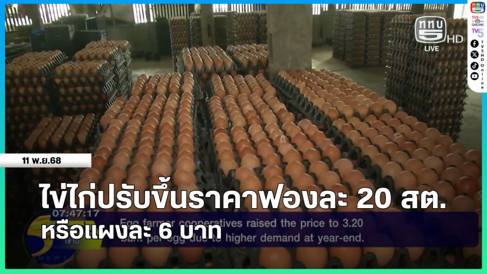 ไข่ไก่ปรับขึ้นราคาฟองละ 20 สต. หรือแผงละ 6 บาท