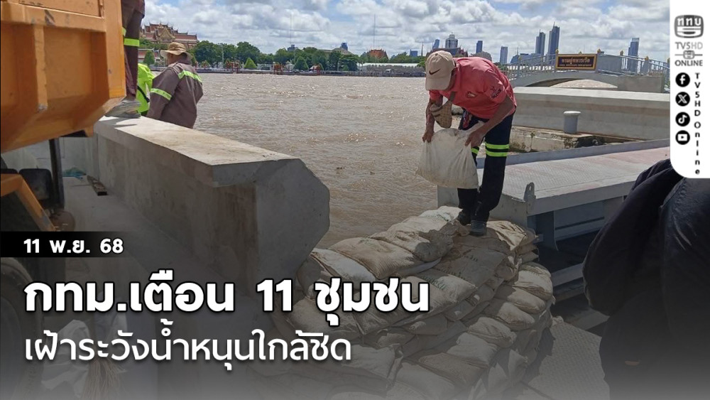 วันที่ 11 พ.ย.68 - กรุงเทพมหานครยืนยันสามารถควบคุมสถานการณ์น้ําในแม่น้ําเจ้าพระยาได้ แม้ว่าระดับน้ําจะยังคงสูงจากการระบายน้ําเหนือและแรงหนุนจากน้ําทะเล โดยล่าสุดได้เตือน 11 ชุมชนที่อยู่นอกแนวคันกั้นน้ําใน 6 เขตริมแม่น้ํา ให้เฝ้าระวังตลอด 24 ชั่วโมง พร้อมเร่งเสริมแนวป้องกันน้ําหนุนครบทุกจุด
