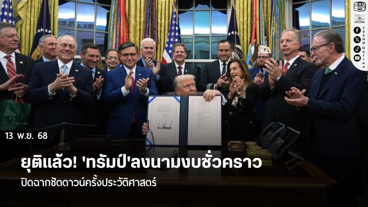 ยุติแล้ว! 'ทรัมป์'ลงนามงบชั่วคราว ปิดฉากชัตดาวน์ครั้งประวัติศาสตร์