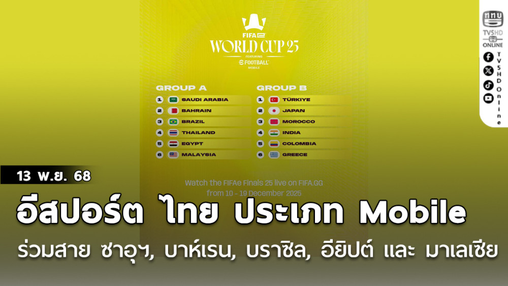 สหพันธ์ฟุตบอลนานาชาติหรือฟีฟ่า จัดพิธีจับสลากแบ่งสายการแข่งขัน FIFAe World Cup 2025 ft. eFootball ประเภท Mobile ที่จะจัดขึ้นที่ประเทศซาอุดีอาระเบีย ระหว่างวันที่ 10-13 ธันวาคม 2568 นี้