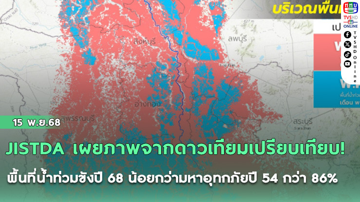 JISTDA เผยภาพจากดาวเทียมเปรียบเทียบ! พื้นที่น้ําท่วมขังปี 68 น้อยกว่ามหาอุทกภัยปี 54 กว่า 86%