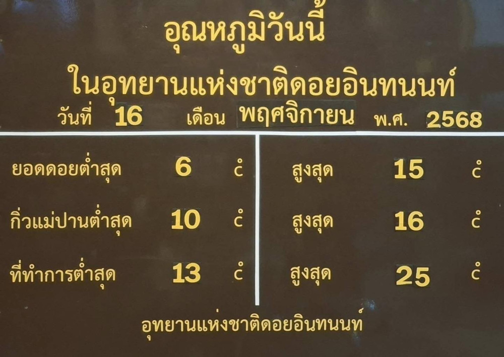 ทั้งนี้ ข้อมูลเมื่อวานระบุว่ามีนักท่องเที่ยวเดินทางเข้าเที่ยวในเขตอุทยานแห่งชาติดอยอินทนนท์รวมทั้งสิ้น 4,275 คน และมีการคาดการณ์ว่าจํานวนนักท่องเที่ยวจะเพิ่มขึ้นอย่างต่อเนื่องไปจนถึงช่วงต้นปีหน้า