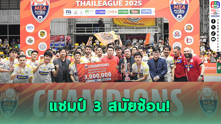 ขณะเดียวกันที่ สนามห้องเย็นท่าข้าม สนามชัย จ.สมุทรสาคร แชมป์เก่า 2 สมัยซ้อน “เทพพระชัย” ห้องเย็นท่าข้าม ที่มี 62 คะแนนก่อนเกม เปิดบ้านโชว์ฟอร์มร้อนแรง ถล่ม “กุ้งสายฟ้า” สุราษฎร์ธานี ขาดลอย 10-2 เก็บเพิ่มเป็น 65 คะแนน แซงหน้า การท่าเรือ เอเอสเอ็ม ขึ้นไปคว้า แชมป์ MEA ฟุตซอลไทยลีก 2025 ได้สําเร็จ พร้อมสร้างประวัติศาสตร์คว้าแชมป์ 3 ปีติดต่อกัน