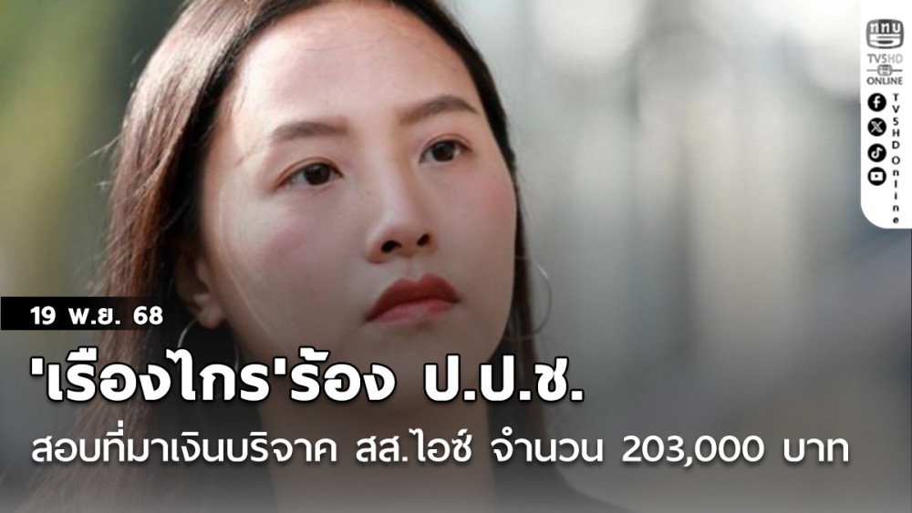 'เรืองไกร'ร้อง ป.ป.ช. สอบที่มาเงินบริจาค'สส.ไอซ์'จํานวน 203,000 บาท และจักรยาน ยื่นบัญชีหรือไม่