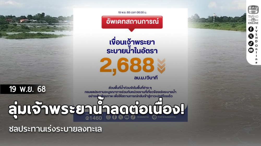 วันที่ 19 พ.ย.68 - สถานการณ์น้ําลุ่มน้ําเจ้าพระยาในช่วงเวลา 06.00 น. มีพัฒนาการในทิศทางที่ดีขึ้นอย่างต่อเนื่อง จากรายงานของกรมชลประทานพบว่าหลายสถานีสําคัญเริ่มมีปริมาณน้ําไหลผ่านลดลง สร้างความคลายกังวลให้กับประชาชนในพื้นที่ท้ายน้ําและกรุงเทพฯ ปริมณฑล