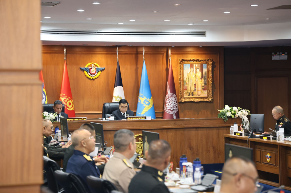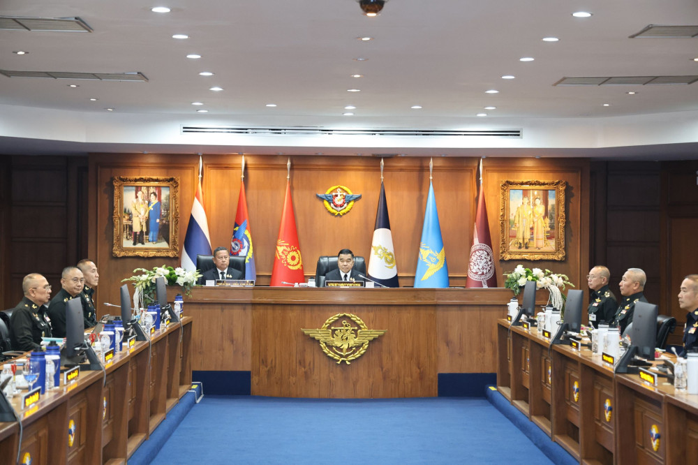 วันที่ 19 พ.ย.68 - พลเอก ณัฐพล นาคพาณิชย์ รัฐมนตรีว่าการกระทรวงกลาโหม เดินทางเป็นประธานการประชุมสภากลาโหม ครั้งที่ 10/2568 พร้อมตรวจเยี่ยมกองบัญชาการกองทัพไทย เพื่อมอบแนวทางการปฏิบัติงานแก่ส่วนราชการ โดยมีพลเอก อุกฤษฎ์ บุญตานนท์ ผู้บัญชาการทหารสูงสุด ให้การต้อนรับอย่างเป็นทางการ ณ กองบัญชาการกองทัพไทย