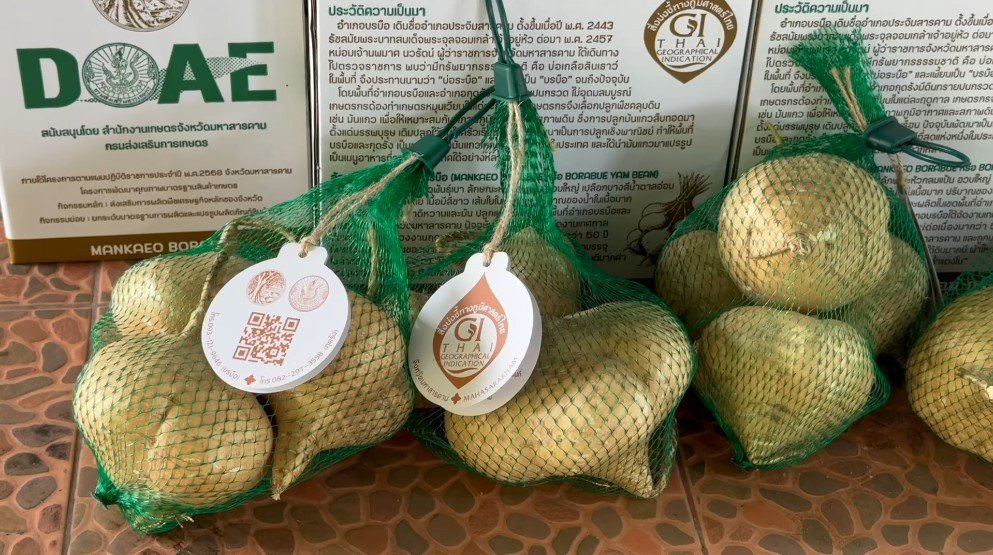 นายสมพร นามพิลา เกษตรจังหวัดมหาสารคาม กล่าวถึงนโยบายในการร่วมมือกับกลุ่มวิสาหกิจชุมชน เช่น กลุ่มวิสาหกิจชุมชนแปลงใหญ่มันแกวอินทรีย์ฯ เพื่อยกระดับมันแกว GI ให้เป็นของฝากประจําจังหวัด