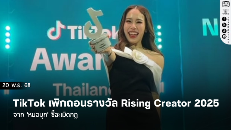 "TikTok ได้ดําเนินการเพิกถอนรางวัล Rising Creator of the Year Award 2025 เนื่องจากมีการ ละเมิดข้อกําหนดและเงื่อนไขของ TikTok Awards เรามุ่งมั่นรักษาความน่าเชื่อถือและความโปร่งใสของงานประกาศรางวัลนี้อย่างเต็มที่ และต้องการให้ TikTok เป็นพื้นที่ที่ทุกคนไว้วางใจในการสร้างสรรค์ เชื่อมต่อ และแสดงความเป็นตัวเองได้อย่างปลอดภัย"