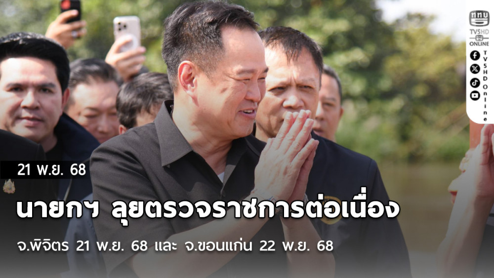 นายกฯ “อนุทิน” ลุยตรวจราชการต่อเนื่อง จ.พิจิตร 21 พ.ย. 68 และ จ.ขอนแก่น 22 พ.ย. 68 ติดตามงานด้านสาธารณสุข ทํากิจกรรมร่วมกับประชาชน และมอบนโยบายแก่ผู้บริหารส่วนจังหวัด