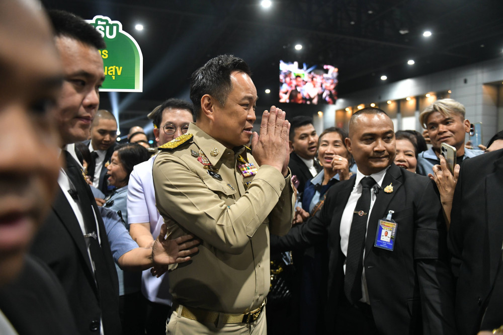“ผมซ้อมๆไว้เดี๋ยวก็เลือกตั้งแล้ว วันนี้ผมเลยมาเจอพี่น้องอสม. มากันเยอะลิบหูลิบตาไปหมด มาเป็นหมื่นๆคน ไม่ว่าใครก็ตามเจ๋งหรือเก๋าขนาดไหน เจอคนเป็นหมื่น เหมือนคนที่มานั่งเป็นพวกเดียวกันแล้วต้องพูดต่อหน้าเขาก็สั่นทุกคน ขณะที่ผมพูดกับทุกคนอยากให้รู้ว่าขาผมสั่นขนาดไหน แต่สั่นด้วยความตื่นเต้นดีใจ และสั่นสู้ทุกครั้งเมื่อเจออสม. เพราะเราเคยเป็นนักรบด้วยกันมาก่อนสมัยโควิด-19 ที่ต้องช่วยกันดูแลพี่น้องประชาชนมากมาย และไม่ว่าสมัยไหนๆเมื่อได้ไปต่างประเทศ ผมก็หน้าบานเป็นกระด้ง เพราะไม่ว่าที่ไหนก็มีหมอพยาบาลนักวิทยาศาสตร์ แต่ที่เขาไม่มีเหมือนเราคืออสม.” นายกรัฐมนตรี กล่าว
