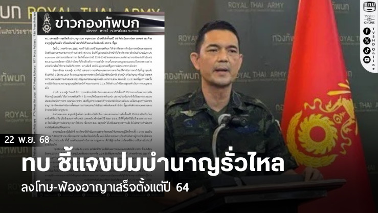 วันนี้ (21 พฤศจิกายน 2568) พลตรี วินธัย สุวารี โฆษกกองทัพบก ได้กล่าวถึงผลการดําเนินการกรณีคณะกรรมการป้องกันและปราบปรามการทุจริตแห่งชาติ (ป.ป.ช.) มีมติชี้มูลความผิดเจ้าหน้าที่เกี่ยวกับการทุจริตเงินบํานาญในระบบ e-pension ของกรมการเงินทหารบก ซึ่งเกิดขึ้นระหว่างปี 2555–2563 โดยตลอดระยะเวลาที่ผ่านมากองทัพบกได้ดําเนินการสอบสวนและลงโทษทางวินัยกําลังพลที่เกี่ยวข้องกับการกระทําผิด ตามขั้นตอนของกฎหมายและระเบียบราชการอย่างเคร่งครัด พร้อมให้ความร่วมมือกับ ป.ป.ช. อย่างเต็มที่ จนนําไปสู่การลงมติชี้มูลความผิดของ ป.ป.ช.ดังกล่าว