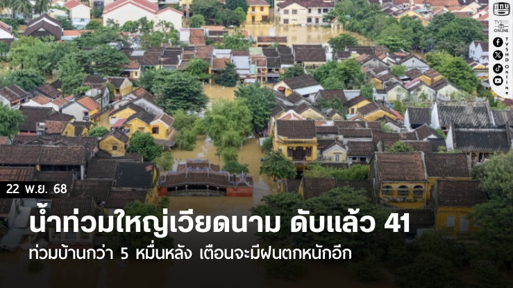 สํานักข่าวต่างประเทศรายงานว่า ยอดผู้เสียชีวิตจากเหตุฝนตกหนัก น้ําท่วมใหญ่และดินถล่ม ในประเทศเวียดนาม ตั้งแต่สุดสัปดาห์ที่ผ่านมา ได้เพิ่มขึ้นเป็น 41 รายแล้ว โดยระดับน้ําในเมืองและหมู่บ้านต่างๆ ที่ถูกน้ําท่วมอยู่แล้ว ยังคงเพิ่มสูงขึ้นอีก
