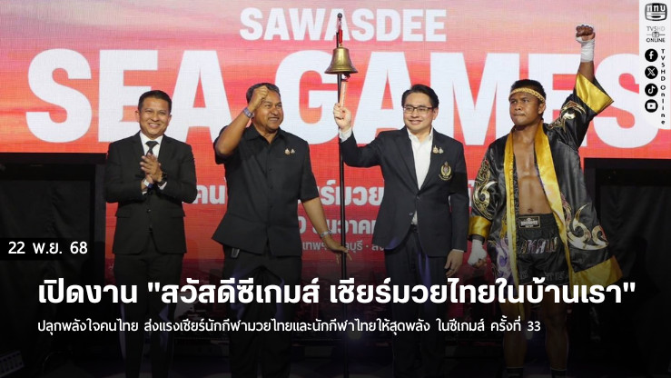 การกีฬาแห่งประเทศไทย (กกท.) ขอเชิญชวนพี่น้องประชาชนชาวไทย ร่วมกันส่งแรงเชียร์และเป็นเจ้าภาพที่อบอุ่นต้อนรับนักกีฬาจากทั่วภูมิภาค ในการแข่งขันมหกรรมกีฬาซีเกมส์ ครั้งที่ 33 ตั้งแต่วันที่ 9 - 20 ธันวาคม 2568 ที่ กรุงเทพ ชลบุรี และสงขลา โดยสามารถรับชมการแข่งขันกีฬามวยไทย แบบติดขอบเวทีได้ตั้งแต่วันที่ 13 - 19 ธันวาคม 2568 ณ อาคารโรงยิม 1,000 ที่นั่ง สนามกีฬาเมืองหลักภาคใต้ (พรุค้างคาว) และสามารถรับชมการถ่ายทอดสดผ่านทางสถานีโทรทัศน์แห่งประเทศไทย (เอ็นบีที) สถานีโทรทัศน์เพื่อการท่องเที่ยวและกีฬา (ทีสปอร์ต 7) รวมถึงสื่อพันธมิตรอีกมากมายที่จะเข้าร่วมถ่ายทอดสดกว่า 30 ชนิดกีฬา เพื่อให้ประชาชนได้รับชมและร่วมเชียร์นักกีฬาไทยได้อย่างใกล้ชิด ไม่พลาดทุกวินาทีสําคัญที่นักกีฬาไทยลงสนาม