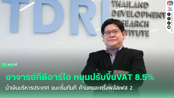 อาจารย์ทีดีอาร์ไอ หนุนปรับขึ้นVAT 8.5% นําเงินบริหารประเทศ แนะเริ่มทันที อย่ารอให้พร้อม ค้านคนละครึ่งพลัสเฟส 2