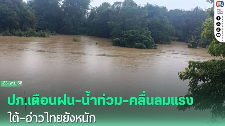 วันที่ 23 พ.ย.68 - กรมป้องกันและบรรเทาสาธารณภัย (ปภ.) รายงานการแจ้งเตือนสาธารณภัยประจําวันที่ 23 พฤศจิกายน 2568 โดยระบุว่าขณะนี้หลายจังหวัดทั่วประเทศยังคงเผชิญความเสี่ยงจากสภาพอากาศแปรปรวน ทั้งน้ําท่วมฉับพลัน น้ําป่าไหลหลาก น้ําล้นตลิ่ง ดินโคลนถล่ม น้ําทะเลหนุนสูง และคลื่นลมแรง โดยเฉพาะพื้นที่ภาคใต้และอ่าวไทยตอนล่างที่ยังอยู่ในภาวะต้องเฝ้าระวังอย่างใกล้ชิด