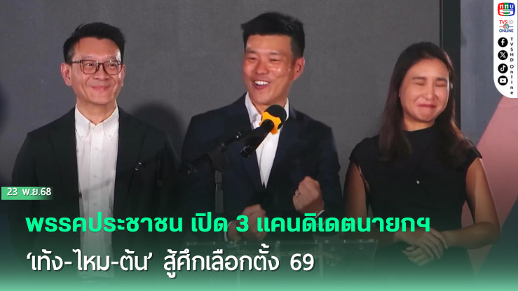 พรรคประชาชน เปิด 3 แคนดิเดตนายกฯ ‘เท้ง-ไหม-ต้น’ สู้ศึกเลือกตั้ง 69 ด้าน ‘ณัฐพงษ์’ ลั่นพรรคส้มชัดเจนไม่มี ‘นายกฯ กล่องสุ่ม’ ให้คํามั่นส่งต่อประเทศไทยที่ไม่เทา-เท่ากัน-ทันโลก พร้อมเปิดชุดนโยบายเร่งฟื้นคืนความเชื่อมั่นให้ประเทศ