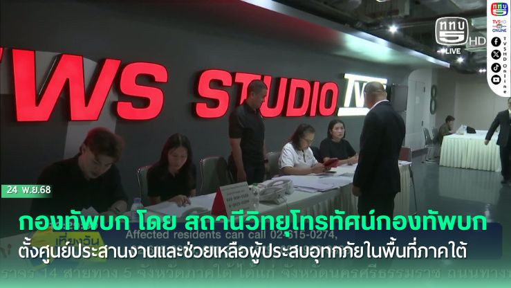 กองทัพบก โดย สถานีวิทยุโทรทัศน์กองทัพบก ตั้งศูนย์ประสานงานและช่วยเหลือผู้ประสบอุทกภัยในพื้นที่ภาคใต้