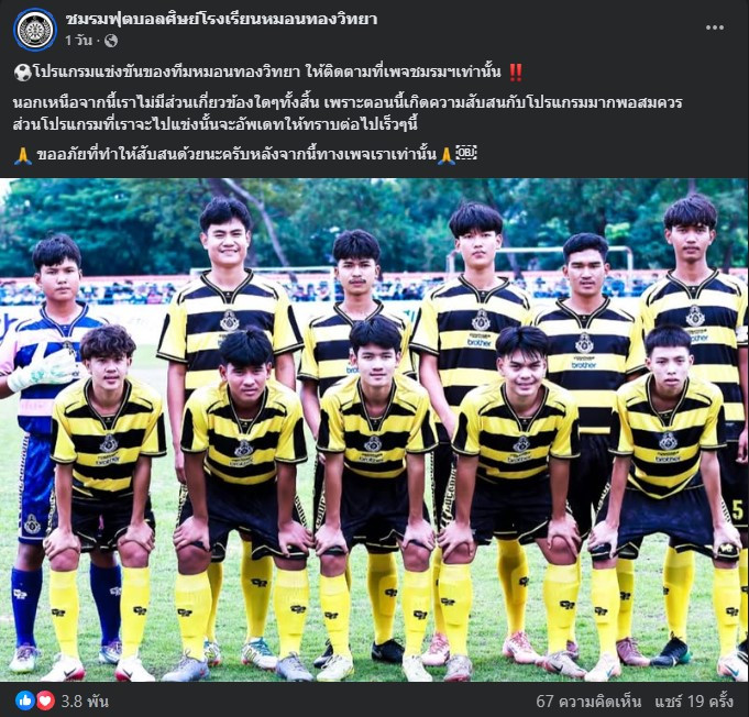 อย่างไรก็ตาม เพื่อไม่ให้เกิดความเข้าใจผิดเพิ่มเติม ทางเพจชมรมฟุตบอลศิษย์หมอนทองวิทยาจึงได้โพสต์ย้ําชัดว่า “โปรแกรมการแข่งขันของทีมหมอนทองวิทยา ให้ติดตามเฉพาะจากเพจชมรมฯ เท่านั้น นอกเหนือจากนี้ไม่มีส่วนเกี่ยวข้องใดๆ ทั้งสิ้น” พร้อมขอโทษแฟนๆ ที่อาจสับสน และยืนยันว่าจะมีการอัปเดตข้อมูลตารางแข่งขันอีกครั้งในเร็วๆ นี้