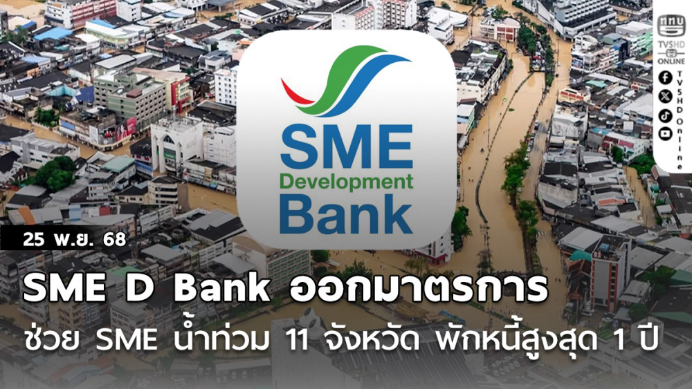 วันที่ 25 พ.ย.68 - นายพิชิต มิทราวงศ์ กรรมการผู้จัดการ SME D Bank เปิดเผยว่า มาตรการนี้ครอบคลุมลูกค้าและผู้ประกอบการ SME ที่ได้รับผลกระทบทั้งทางตรงและทางอ้อมใน 11 จังหวัดภาคใต้ตามรายงานของ ปภ.