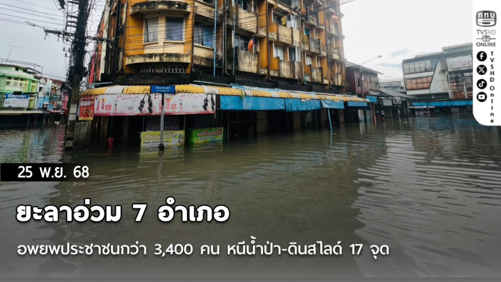 วันที่ 25 พ.ย.68 - สถานการณ์อุทกภัยในจังหวัดยะลายังคงอยู่ในภาวะวิกฤตต่อเนื่อง เนื่องจากปริมาณน้ํายังคงเพิ่มขึ้นขยายเป็นวงกว้าง ส่งผลกระทบสร้างความเสียหายต่อบ้านเรือน ทรัพย์สินของประชาชน พื้นที่การเกษตร และโครงสร้างพื้นฐานสาธารณประโยชน์เป็นวงกว้าง โดยรายงานสถานการณ์ล่าสุด ณ วันที่ 24 พฤศจิกายน 2568 จากกองอํานวยการป้องกันและบรรเทาสาธารณภัยจังหวัดยะลา (ปภ.ยะลา) ระบุว่า มีพื้นที่ได้รับผลกระทบแล้วรวม 7 อําเภอ 46 ตําบล คิดเป็น 21,950 ครัวเรือน และมีประชาชนได้รับผลกระทบสูงถึง 65,627 คน นอกจากนี้ ยังเป็นที่น่าเสียใจว่า มีรายงานผู้เสียชีวิตจากสถานการณ์น้ําท่วมแล้วรวม 3 ราย ในพื้นที่อําเภอรามัน, ธารโต, และบันนังสตา