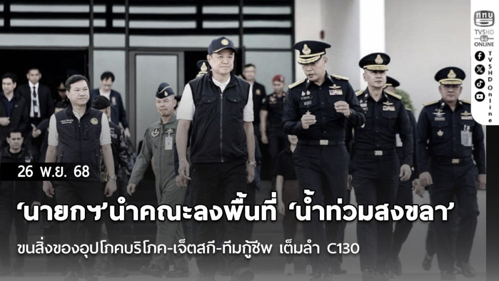 ‘นายกฯ’นําคณะลงพื้นที่‘น้ําท่วมสงขลา’รอบ3 ขนสิ่งของอุปโภคบริโภค-เจ็ตสกี-ทีมกู้ชีพ เต็มลํา C130 ระดมสรรพกําลังช่วยวิกฤตน้ําท่วมเมืองหาดใหญ่