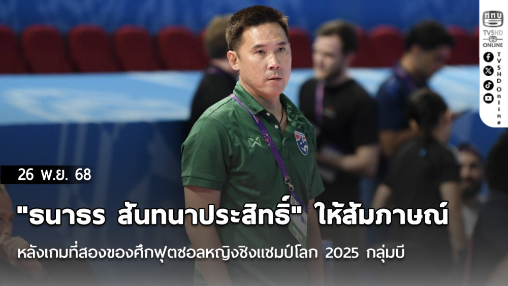 ธนาธร สันทนาประสิทธิ์ หัวหน้าผู้ฝึกสอน ฟุตซอลหญิงทีมชาติไทย ให้สัมภาษณ์หลังการแข่งขันฟุตซอลหญิงชิงแชมป์โลก 2025 กลุ่มบี นัดที่สอง
