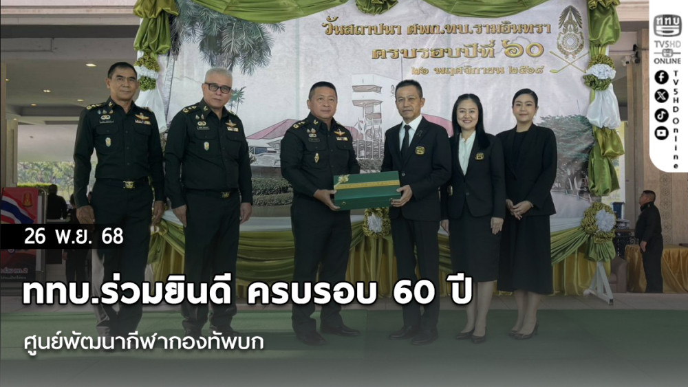 วันที่ 26 พ.ย.68 - สถานีวิทยุโทรทัศน์กองทัพบก (ททบ.) โดยพลโท ยุทธกร สุภาสูรย์ รองผู้อํานวยการใหญ่สายงานบริหาร สถานีวิทยุโทรทัศน์กองทัพบก พร้อมด้วย คุณศศิ นันทขว้าง รองผู้อํานวยการฝ่ายนโยบายและแผน