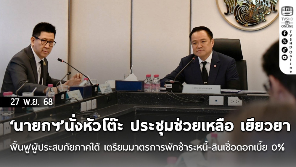‘นายกฯ’นั่งหัวโต๊ะ ประชุมช่วยเหลือ เยียวยา ฟื้นฟูผู้ประสบภัยภาคใต้ เตรียมมาตรการพักชําระหนี้-สินเชื่อดอกเบี้ย 0% ช่วยผู้ประกอบการ เร่งประสานบริษัทประกันจ่ายเงินชดเชยเร็วที่สุด