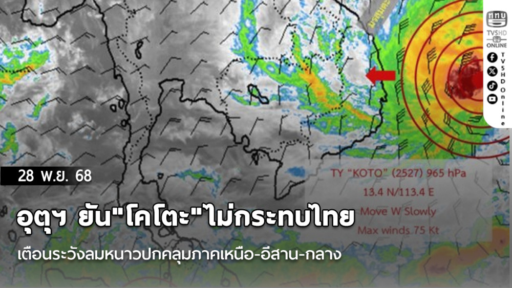 ประกาศกรมอุตุนิยมวิทยา เรื่อง พายุ “โคโตะ” และอากาศหนาวเย็นบริเวณประเทศไทยตอนบน ฉบับ ที่ 4 (366/2568) (มีผลกระทบตั้งแต่วันที่ 28-30 พฤศจิกายน 2568)