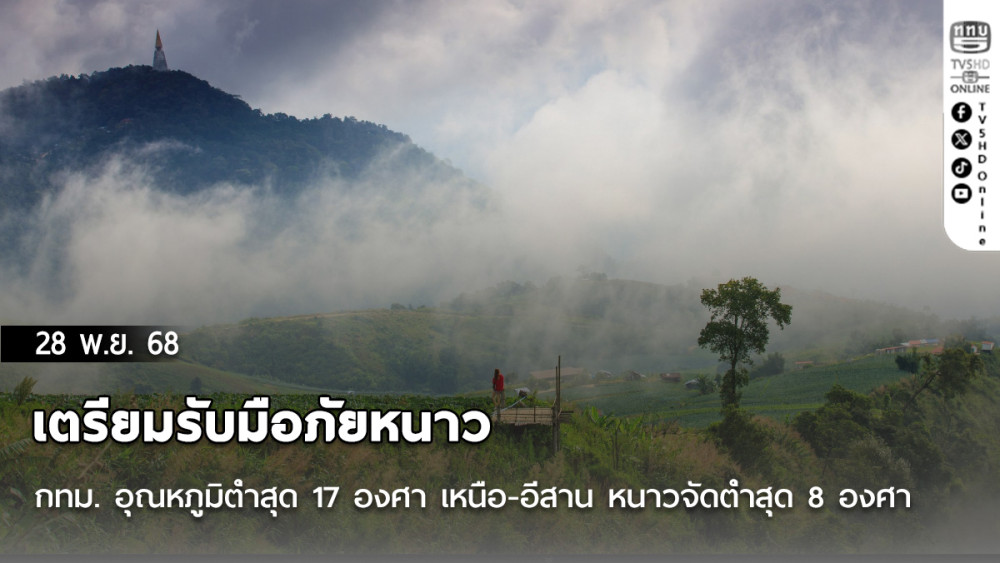 กรมอุตุนิยมวิทยาพยากรณ์อากาศ 24 ชั่วโมงข้างหน้า (28 พ.ย. 68) ว่า บริเวณความกดอากาศสูงหรือมวลอากาศเย็นกําลังค่อนข้างแรงจากประเทศจีนได้แผ่ลงมาปกคลุมประเทศไทยตอนบน ภาคใต้ตอนบน และทะเลจีนใต้แล้ว ส่งผลให้พื้นที่ดังกล่าวมีอากาศเย็นลงและมีลมแรง โดยภาคตะวันออกเฉียงเหนือ อุณหภูมิจะลดลงอีกเล็กน้อย ส่วนภาคเหนือ ภาคกลาง รวมทั้งกรุงเทพมหานครและปริมณฑล ภาคตะวันออก และภาคใต้ตอนบน อุณหภูมิจะลดลง 1–2 องศาเซลเซียส ขอให้ประชาชนในบริเวณดังกล่าวดูแลรักษาสุขภาพเนื่องจากสภาพอากาศที่หนาวเย็นลง รวมถึงให้ระวังอันตรายจากอัคคีภัยที่อาจจะเกิดขึ้นจากสภาพอากาศแห้งและลมแรง ทั้งนี้เนื่องจากบริเวณความกดอากาศสูงหรือมวลอากาศเย็นกําลังค่อนข้างแรงจากประเทศจีนได้แผ่ลงมาปกคลุมประเทศไทยตอนบน ภาคใต้ตอนบน และทะเลจีนใต้ตอนบนแล้ว