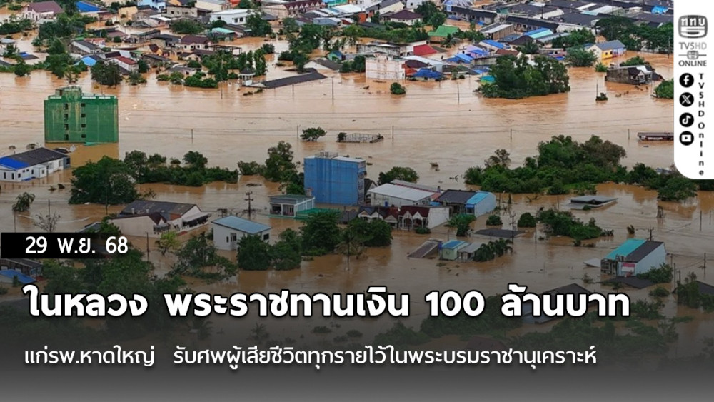 ในหลวง พระราชทานเงิน 100 ล้านบาท แก่รพ.หาดใหญ่ เพื่อฟื้นฟูและซื้อเครื่องมือแพทย์หลังน้ําท่วมใหญ่ รับศพผู้เสียชีวิตทุกรายไว้ในพระบรมราชานุเคราะห์