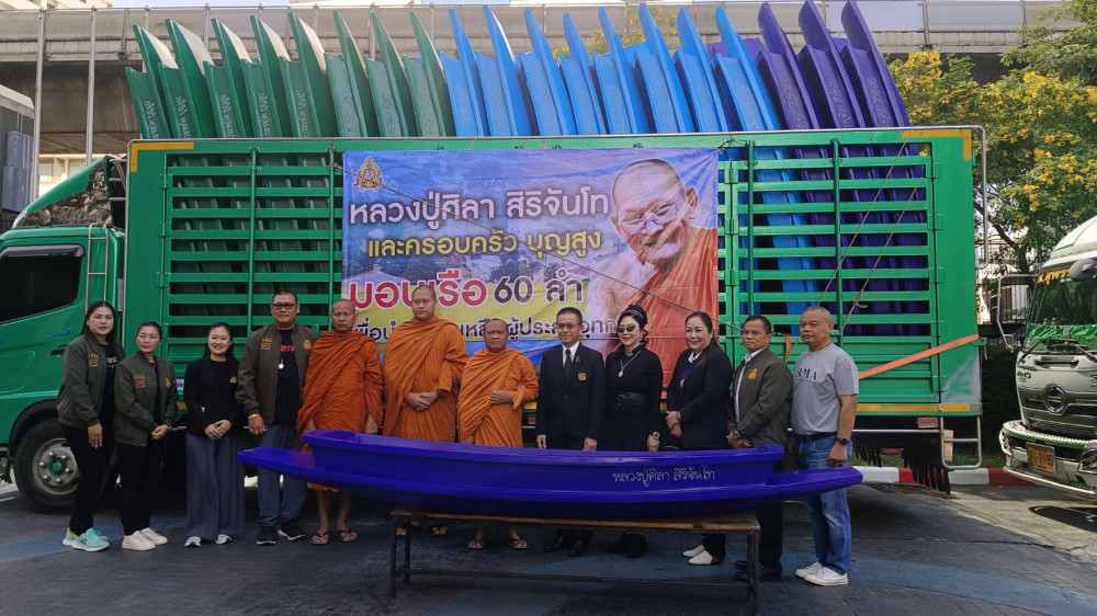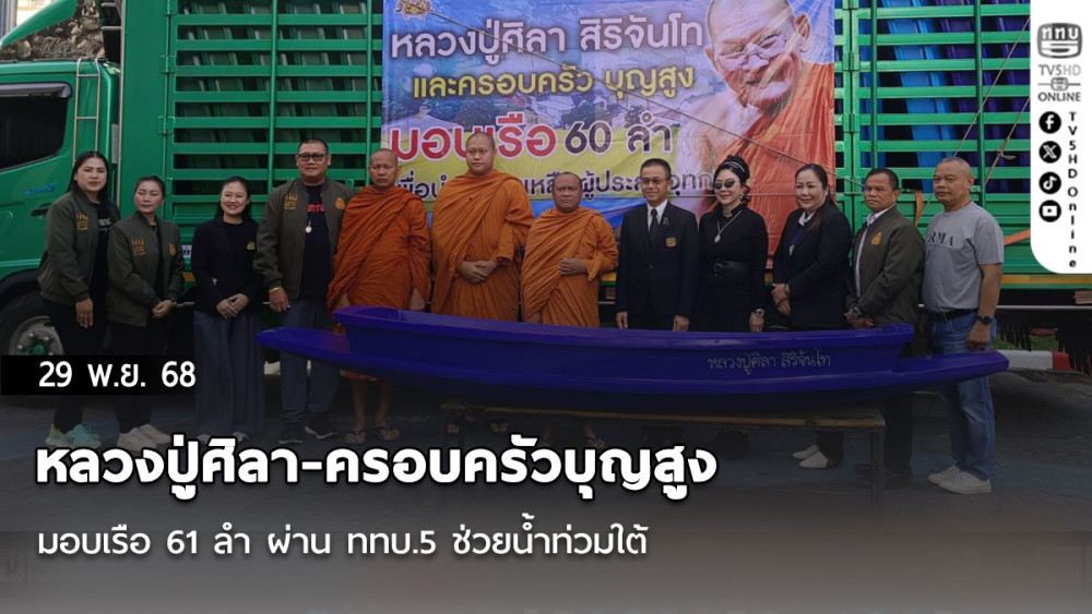วันที่ 29 พ.ย.68 - พลโทยุทธกร สุภาสูรย์ รองผู้อํานวยการใหญ่สายงานบริหาร สถานีวิทยุโทรทัศน์กองทัพบก เป็นผู้แทนรับมอบ เรือพร้อมไม้พายจํานวน 61 ลํา ซึ่งเป็นธารน้ําใจจาก พระราชวัชรธรรมโสภณ (หลวงปู่ศิลา สิริจันโท) และทีมงานวัดสวนธรรมปีติ จังหวัดกาฬสินธุ์ ร่วมกับ ครอบครัวบุญสูง โดยมีคุณสุธัญญา บุญสูง เป็นผู้แทนส่งมอบ