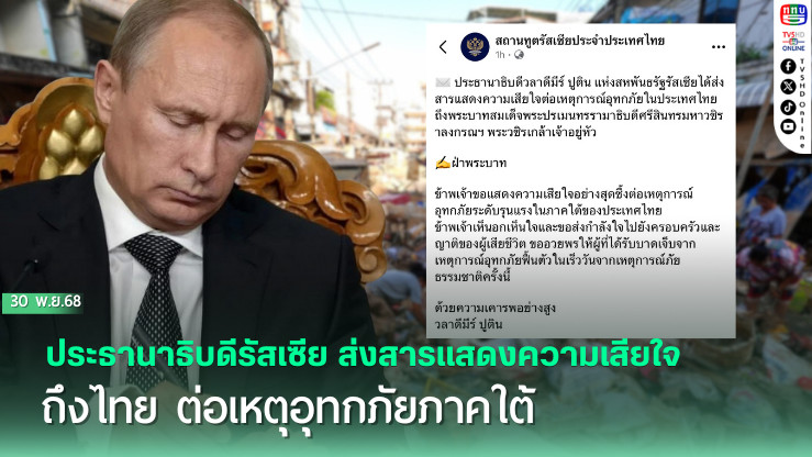 การส่งสารครั้งนี้สะท้อนความห่วงใยและมิตรไมตรีของรัสเซียต่อประเทศไทยในยามเผชิญภัยพิบัติ พร้อมยืนยันถึงความสัมพันธ์อันแน่นแฟ้นของทั้งสองประเทศที่มีต่อกันมาอย่างยาวนาน