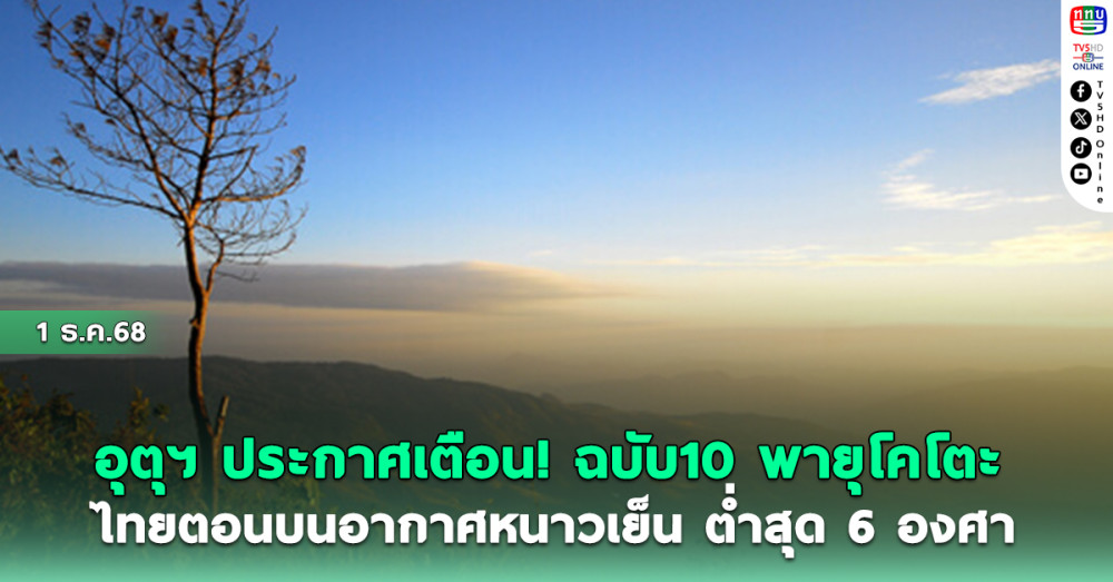 กรมอุตุฯ ประกาศเตือนภัย ฉบับ 10 อัปเดตเส้นทางพายุ โคโตะ ไทยตอนบน มีอากาศเย็นถึงหนาว และมีหมอกในตอนเช้า กทม.และปริมณฑล อุณหภูมิต่ําสุด 19 องศา