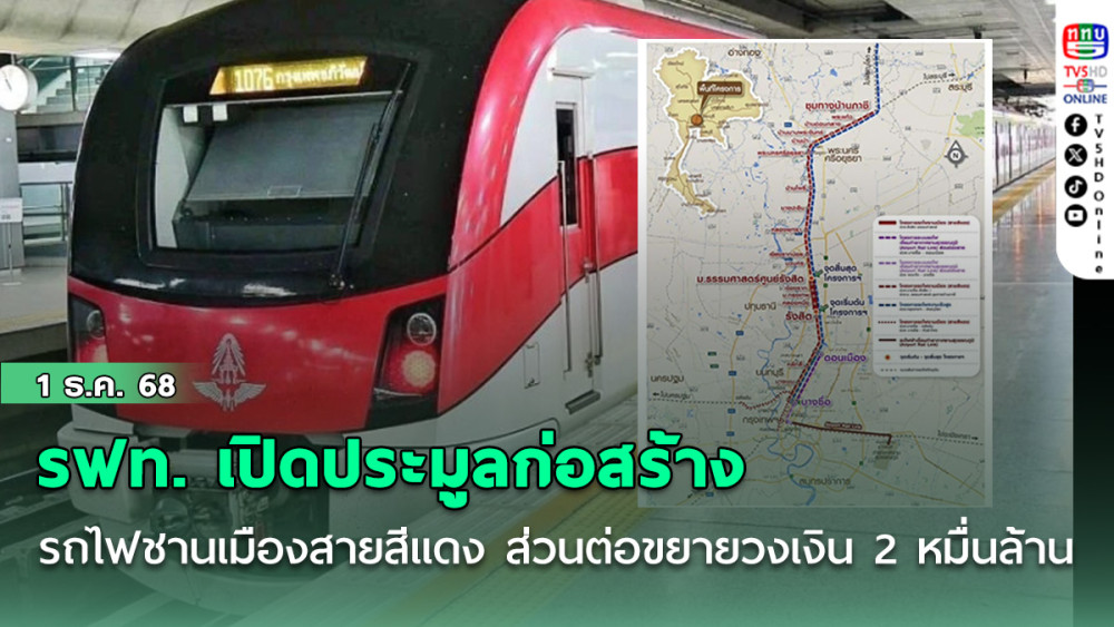 รฟท. เปิดประมูลก่อสร้างรถไฟชานเมืองสายสีแดง ส่วนต่อขยายวงเงิน 2 หมื่นล้านบาท