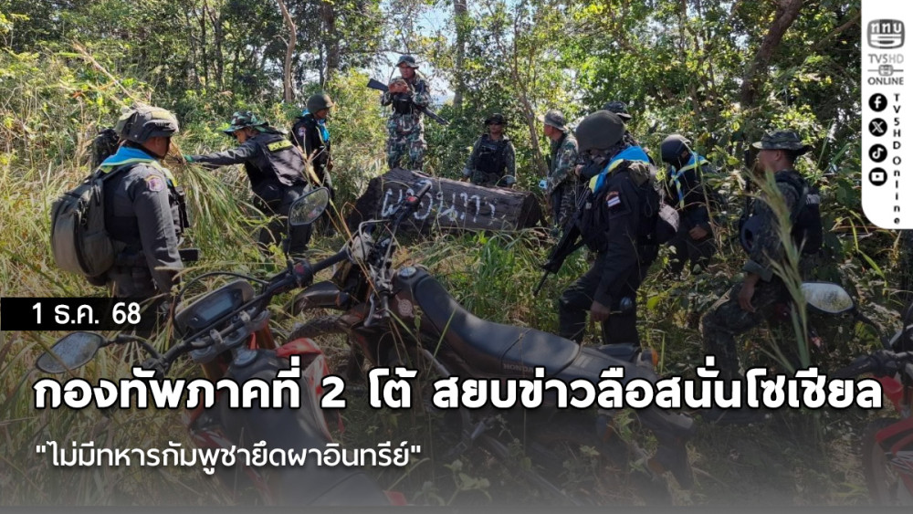 กองทัพภาคที่ เคลียร์ชัด ผาอินทรีย์ ! แจงละเอียดทุกประเด็น หลังส่งหน่วยเฉพาะกิจลงพื้นที่ตรวจสอบข้อเท็จจริงชายแดนบุรีรัมย์ ยืนยัน "ไม่พบการรุกล้ําอธิปไตย" เตรียมดําเนินคดี พ.ร.บ.คอมพิวเตอร์ กับผู้เผยแพร่ข้อมูลเท็จ