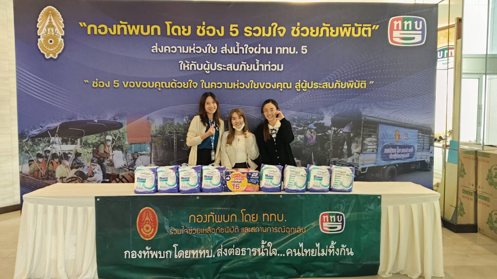 นอกจากนี้ยังมี น้ําใจจากภาคประชาชนที่เดินทางมาส่งมอบสิ่งของใช้ที่จําเป็น เพื่อให้ ททบ.5 ทําหน้าที่เป็นศูนย์ประสานงานส่งต่อธารน้ําใจเหล่านี้ไปสู่ผู้ประสบอุทกภัย