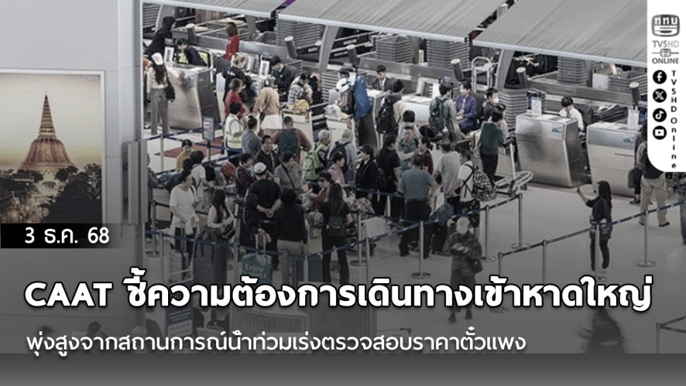 CAAT ชี้ความต้องการเดินทางเข้าหาดใหญ่พุ่งสูงจากสถานการณ์น้ําท่วมเร่งตรวจสอบราคาตั๋วแพง