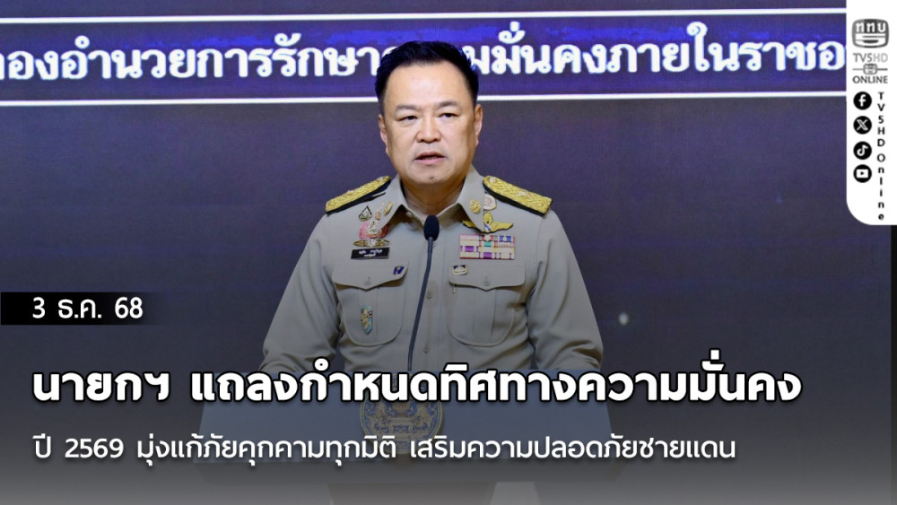 นายกฯ แถลงกําหนดทิศทางความมั่นคงปี 2569 มุ่งแก้ภัยคุกคามทุกมิติ เสริมความปลอดภัยชายแดน แก้ปัญหายาเสพติด อาชญากรรมออนไลน์ ควบคู่ยกระดับคุณภาพชีวิตประชาชน