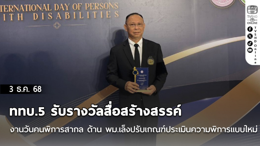 พลโท อาวุธ พุทธอํานวย กรรมการผู้อํานวยการใหญ่สถานีวิทยุโทรทัศน์กองทัพบก เข้ารับ รางวัลเกียรติคุณ สื่อมวลชนสร้างสรรค์เพื่อส่งเสริมคนพิการ ประจําปี 2568 มอบโดย นายอัครา พรหมเผ่า รัฐมนตรีว่าการกระทรวงการพัฒนาสังคมและความมั่นคงของมนุษย์ ในงาน วันคนพิการสากล 3 ธันวาคม 2568 จัดโดยกระทรวงพัฒนาสังคมและความมั่นคงของมนุษย์ ภายใต้แนวคิด
