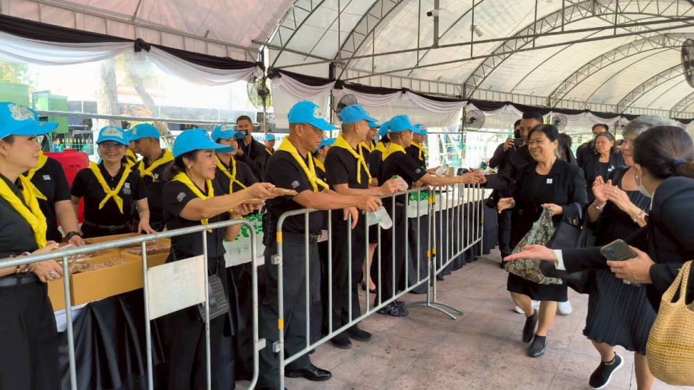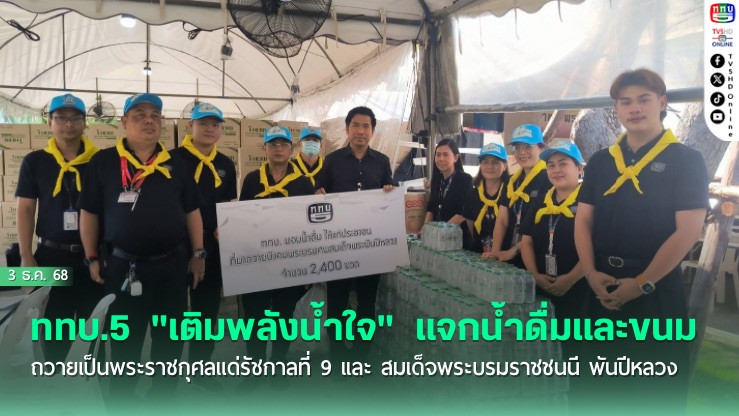 น้อมสํานึกในพระมหากรุณาธิคุณอันยิ่งใหญ่! ททบ.5 นําคณะผู้บริหารและจิตอาสาฯ จัดกิจกรรม "เติมพลังน้ําใจ" แจกน้ําดื่ม 2,400 ขวด อํานวยความสะดวกประชาชนที่เดินทางเข้ากราบถวายบังคมพระบรมศพสมเด็จพระนางเจ้าสิริกิติ์ พระบรมราชินีนาถ พระบรมราชชนนีพันปีหลวง