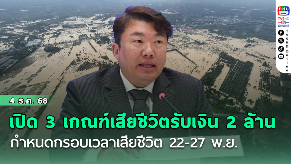 ศป.กฉ. เคาะเกณฑ์เยียวยา 2 ล้านบาท ผู้เสียชีวิตอุทกภัยใต้ 9 จังหวัด กําหนดเงื่อนไขการเสียชีวิต 3 รูปแบบ แจงที่มางบประมาณจาก 2 ส่วน โอนถึงจังหวัดแล้ว ตั้งคณะกรรมการระดับจังหวัดพิจารณา พร้อมยืนยันเว็บไซต์ ปภ. กลับมาใช้งานได้ปกติ เตรียมส่งทีมผู้เชี่ยวชาญลงพื้นที่หาดใหญ่เฝ้าระวังพายุลูกใหม่