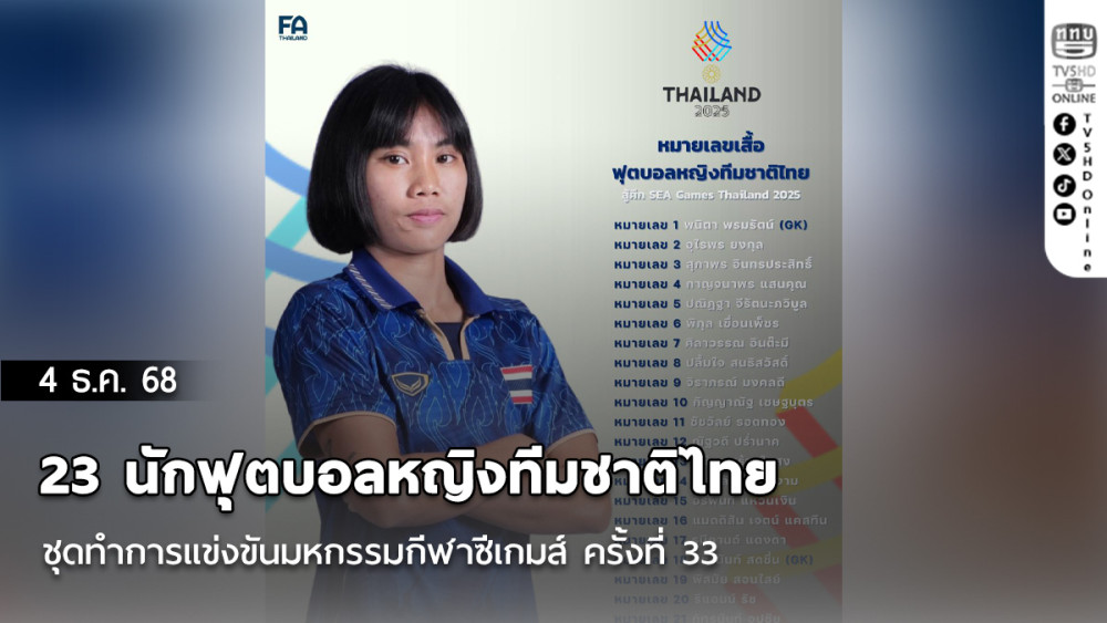 ฟุตบอลหญิงทีมชาติไทย ชุดซีเกมส์ ประกาศหมายเลขเสื้อ นักกีฬาทั้ง 23 คน ที่จะทําการแข่งขันฟุตบอลหญิงในมหกรรมกีฬาซีเกมส์ ครั้งที่ 33 Women's SEA Games Thailand 2025 ที่ประเทศไทยเป็นเจ้าภาพ ระหว่างวันที่ 9-20 ธันวาคม 2568 ณ ชลบุรี สเตเดียม จังหวัดชลบุรี
