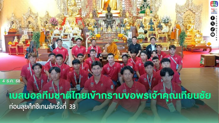 พ.ต.อ. ดวงโชติ สุวรรณจรัส นายกสมาคมกีฬาเบสบอลแห่งประเทศไทย นําทัพนักกีฬาเบสบอลชายทีมชาติไทย เข้ากราบนมัสการพระวัชรญาณมุนี (เทียนชัย ชยทีโป) เจ้าอาวาสวัดเทพสรธรรมาราม จังหวัดปทุมธานี เพื่อความเป็นสิริมงคลก่อนออกลุยศึกซีเกมส์ ครั้งที่ 33 เมื่อวันที่ 4 ธันวาคม 2568