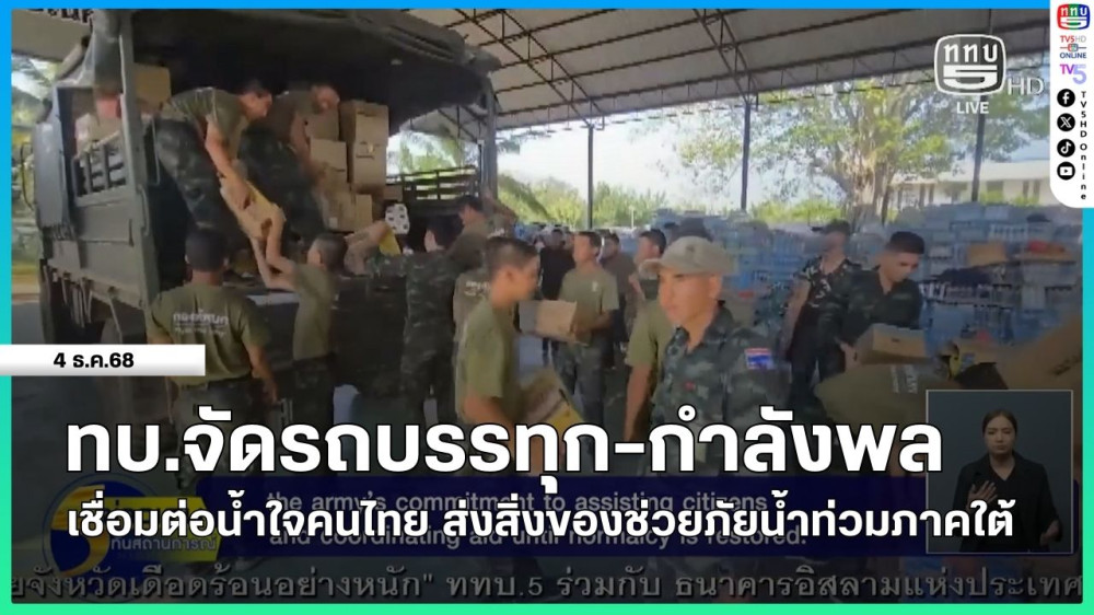 ทบ.จัดรถบรรทุก-กําลังพล เชื่อมต่อน้ําใจคนไทย ส่งสิ่งของช่วยภัยน้ําท่วมภาคใต้