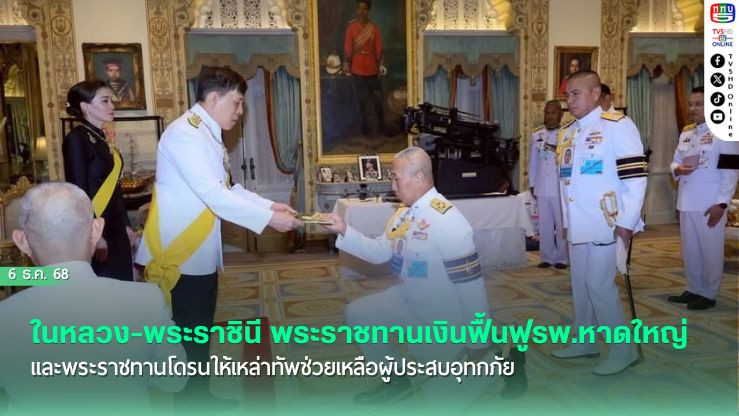 วานนี้ 5 ธันวาคม 2568 เวลา 19.42 น. พระบาทสมเด็จพระเจ้าอยู่หัว และสมเด็จพระนางเจ้าฯ พระบรมราชินี เสด็จออก ณ พระที่นั่งอัมพรสถาน พระราชวังดุสิต พระราชทานพระบรมราชวโรกาสให้ นายอนุทิน ชาญวีรกูล นายกรัฐมนตรี นํา นายแพทย์วิโรจน์ โยมเมือง ผู้อํานวยการโรงพยาบาลหาดใหญ่ เฝ้าทูลละอองธุลีพระบาท รับพระราชทานเงิน เพื่อฟื้นฟูและจัดซื้อเครื่องมือและอุปกรณ์ทางการแพทย์ ทดแทนที่เสียหายจากเหตุอุทกภัย และพระราชทานพระบรมราชวโรกาสให้ ผู้บัญชาการทหารสูงสุด ผู้บัญชาการทหารบก ผู้บัญชาการทหารเรือ ผู้บัญชาการทหารอากาศ และผู้บัญชาการตํารวจแห่งชาติ เฝ้าทูลละอองธุลีพระบาท รับพระราชทานอากาศยานไร้คนขับ (Drone) สําหรับค้นหา และสําหรับขนส่งอาหารกับสิ่งของ เพื่อช่วยเหลือผู้ประสบอุทกภัยในพื้นที่จังหวัดสงขลา และจังหวัดอื่นในพื้นที่ภาคใต้