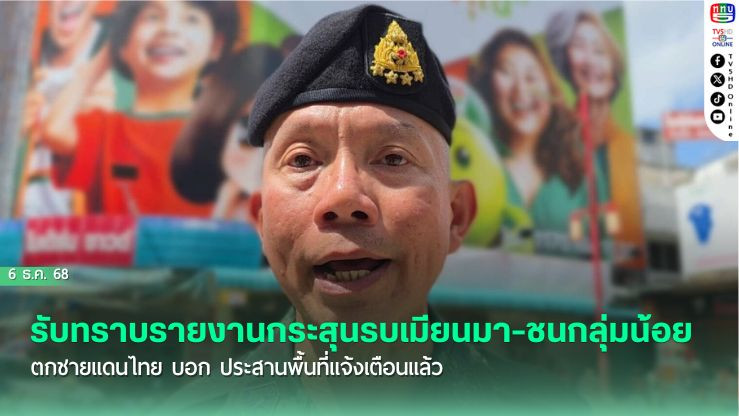 ผบ.ทสส. รับทราบรายงานกระสุนรบเมียนมา-ชนกลุ่มน้อย ตกชายแดนไทย บอก ประสานพื้นที่แจ้งเตือนแล้ว หากเกิดซ้ําเตรียมใช้กฎการใช้กําลัง พร้อมเตรียมสั่งอพยพ ปชช.จากที่เสี่ยง