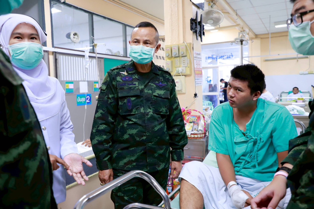 ทหาร 5 นาย ถูกกระแสไฟฟ้าช็อต ขณะปฏิบัติภารกิจฟื้นฟูโรงพยาบาลส่งเสริมสุขภาพตําบลสะดาวา อําเภอยะรัง จังหวัดปัตตานี อาการปลอดภัยแล้ว แม่ทัพ4รุดเยี่ยมให้กําลังใจ