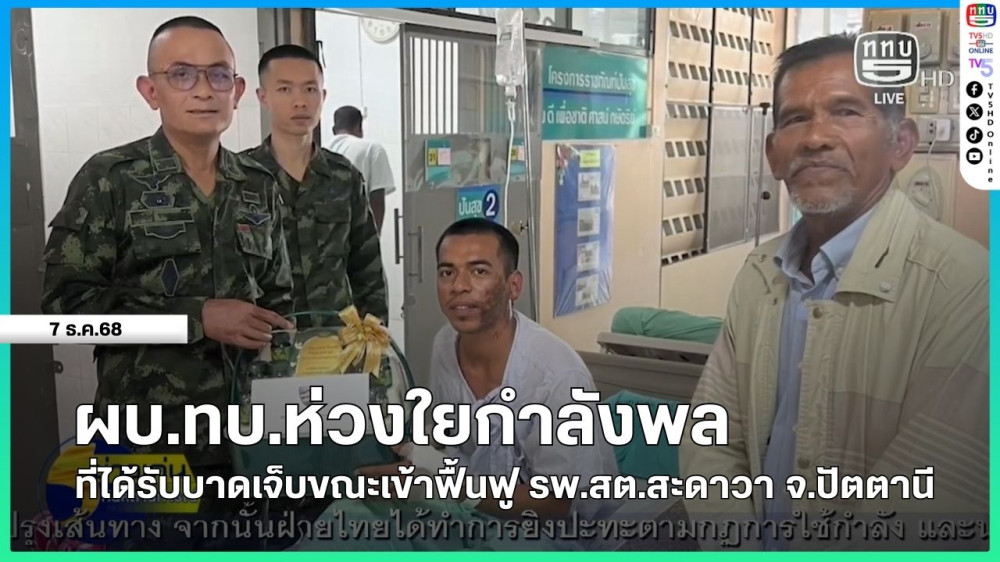 ผบ.ทบ.ห่วงใยกําลังพล ที่ได้รับบาดเจ็บขณะเข้าฟื้นฟู รพ.สต.สะดาวา จ.ปัตตานี + กรมทหารราบที่ 5 มอบถุงยังชีพ และประชาสัมพันธ์การทิ้งขยะในพื้นที่หาดใหญ่ + ฉก.ทพ.43 ร่วมกับผู้นําชุมชน ลงพื้นที่ช่วยประชาชน จ.ปัตตานี หลังอุทกภัย