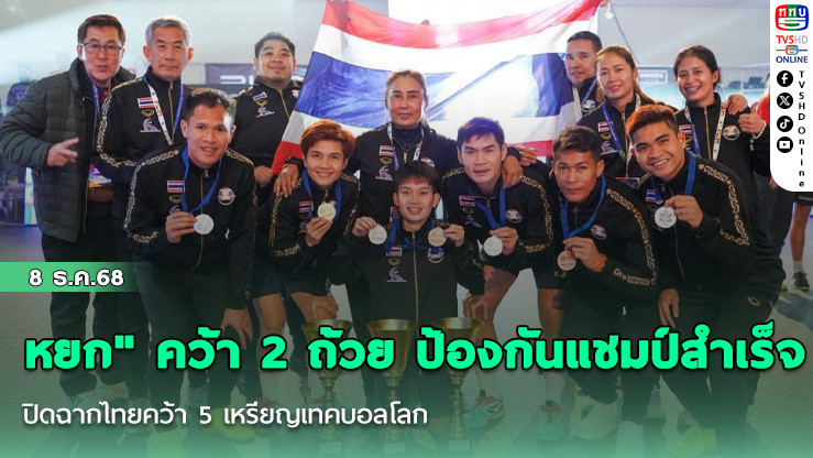 การแข่งขันเทคบอลชิงแชมป์โลกรายการ Teqball World Championships 2025 ณ ประเทศโรมาเนีย เมื่อวันที่ 7 ธันวาคม 2568 “สิงห์โต๊ะโค้ง”ทีมชาติไทย ทําผลงานได้อย่างร้อนแรงพาเหรดเข้าชิงได้ถึง 4 ประเภทจาก หญิงเดี่ยว ,คู่ชาย, คู่หญิงและ คู่ผสม